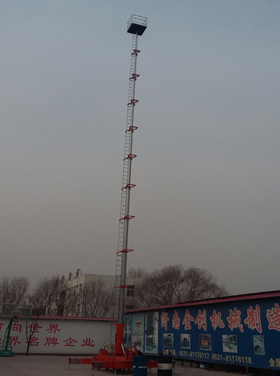 2、整機(jī)由平臺(tái)、伸縮油缸、單梯式或雙梯式防轉(zhuǎn)機(jī)構(gòu)、底盤油箱、支腿、行走輪等組成。